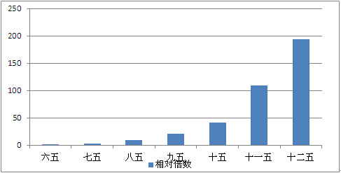 国家电力投资不同时期增长情况(六五为基数)